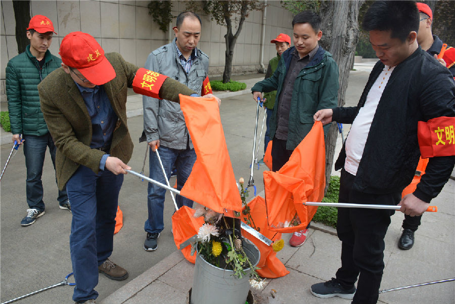 三、開展“倡議文明緬懷,減少廢棄污染”拾撿垃圾志愿服務活動。緬懷先烈活動結束后,市建投公司志愿者們在烈士陵園內開展“倡議文明緬懷,減少廢棄污染”拾撿垃圾志愿服務活動。每位志愿者都手持垃圾鉗,認真將散落在紀念碑前以及隱藏在雜草中的廢棄鮮花、飲料瓶、紙張等垃圾拾撿起來放入提前準備好的垃圾袋中?;顒映掷m一個小時,志愿者們在祭奠先烈的同時以自己的實際行動表達崇敬之情,并倡導以獻一束花、敬一杯酒、植一棵樹、清掃墓碑等方式寄托哀思,將祭拜逝者的傳統習俗以更加環保、健康、安全、文明的方式表達,營造文明祭祀的良好氛圍。