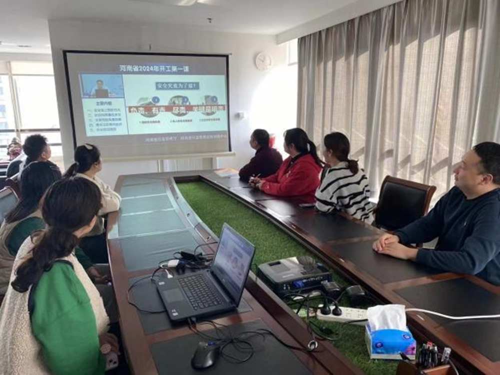 為認(rèn)真貫徹習(xí)近平總書記關(guān)于安全生產(chǎn)重要指示精神,全面落實(shí)黨中央、國務(wù)院和省委、省政府決策部署,切實(shí)做好春節(jié)后復(fù)工復(fù)產(chǎn)企業(yè)的安全生產(chǎn)工作,有效杜絕準(zhǔn)備不充分、員工精神狀態(tài)不佳、設(shè)備故障運(yùn)行、安全管理不到位等問題引發(fā)的生產(chǎn)安全事故,確保復(fù)工復(fù)產(chǎn)安全, 全面恢復(fù)現(xiàn)場施工,保證項(xiàng)目施工進(jìn)度,壓實(shí)項(xiàng)目、監(jiān)理、總分包管理責(zé)任。建投集團(tuán)2月28日上午按照省、市安委會(huì)及城發(fā)集團(tuán)統(tǒng)一要求,組織控股公司、項(xiàng)目部留守人員及施工、監(jiān)理單位共計(jì)129人統(tǒng)一收看“河南省 2024 年開工第一課講安全”專題講座直播和安全生產(chǎn)責(zé)任在肩安全生產(chǎn)警示教育片。